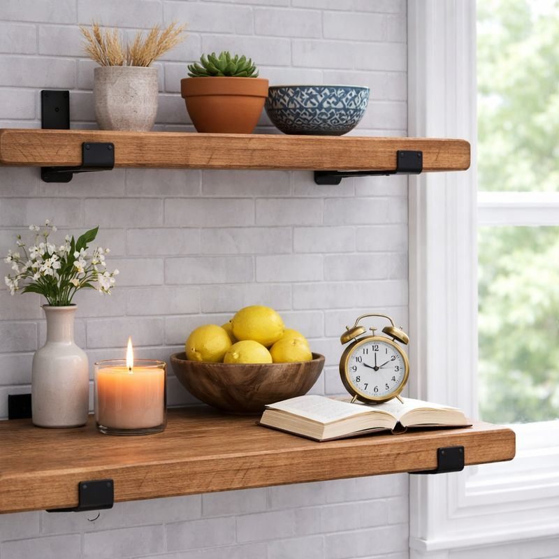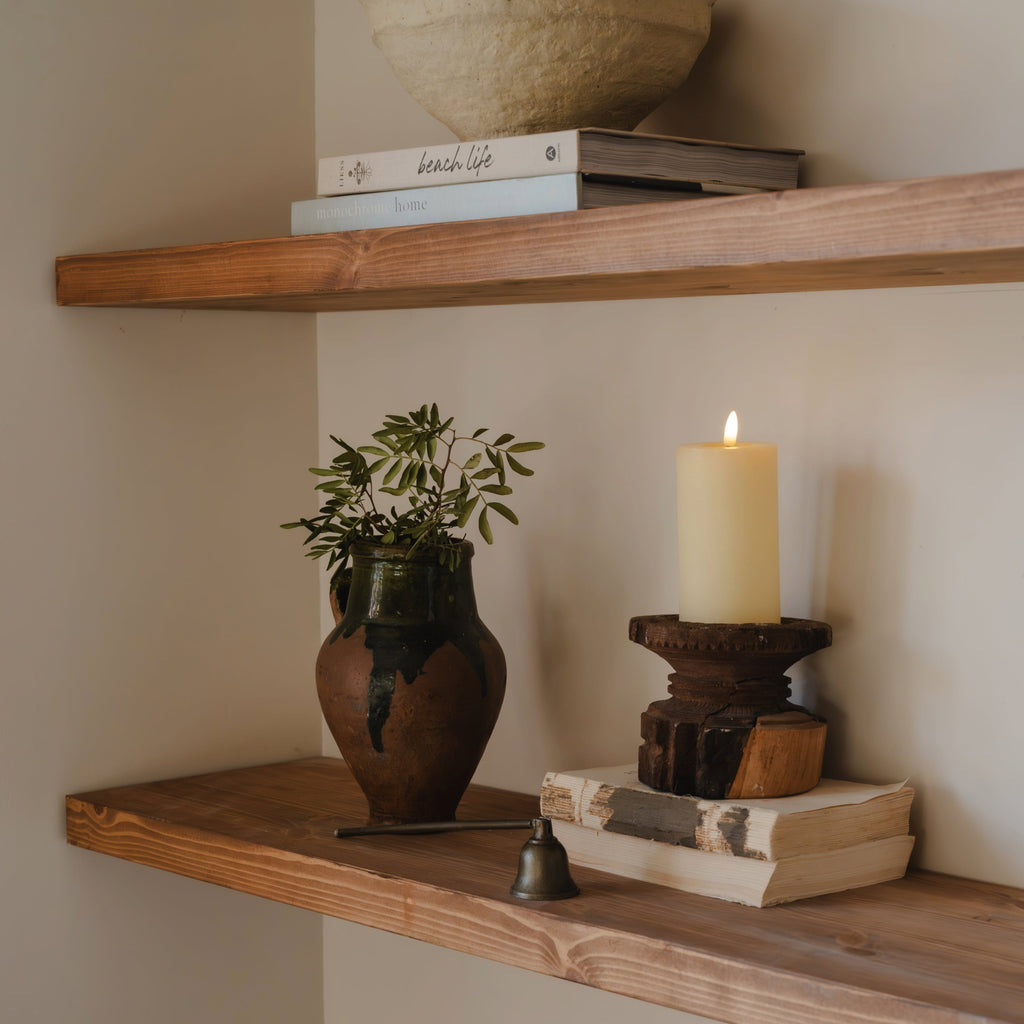 Our range includes solid wooden shelves, perfect for creating a rustic shelf aesthetic, alongside versatile wall shelves that seamlessly blend with modern and traditional interiors. Whether you're looking for a sturdy wall shelf unit to organise your essentials or a decorative mantel to showcase cherished decor, we have the perfect fit for every room.