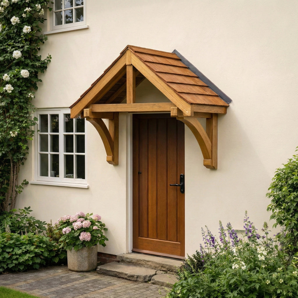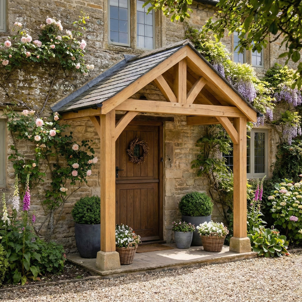 Our oak porches are hand-crafted in Devon from premium European oak, offering a timeless addition to your home.