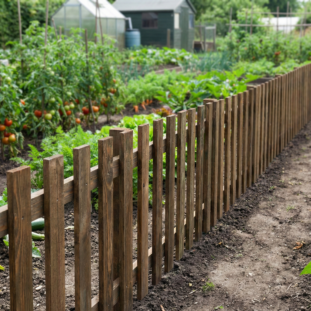 Wooden Picket Panel fence section shown in full view, displaying classic vertical picket design with curved tops