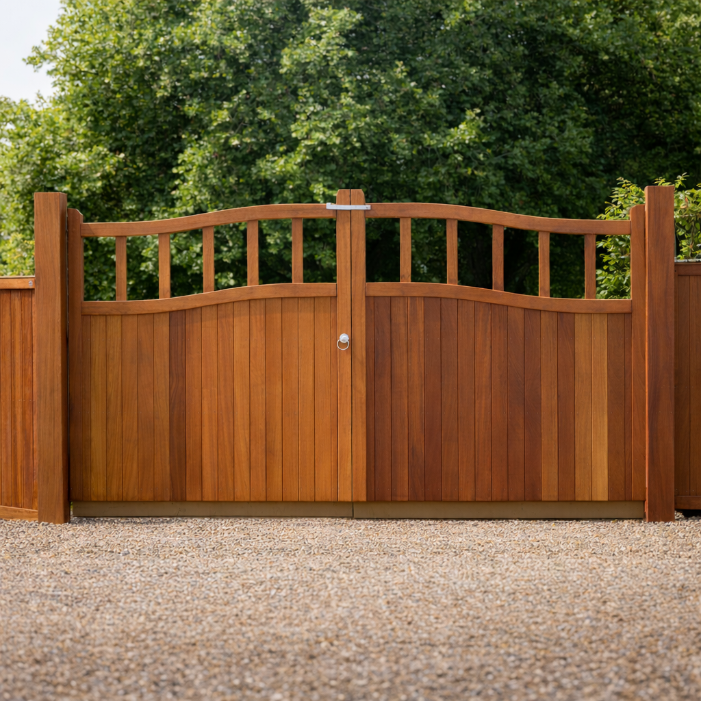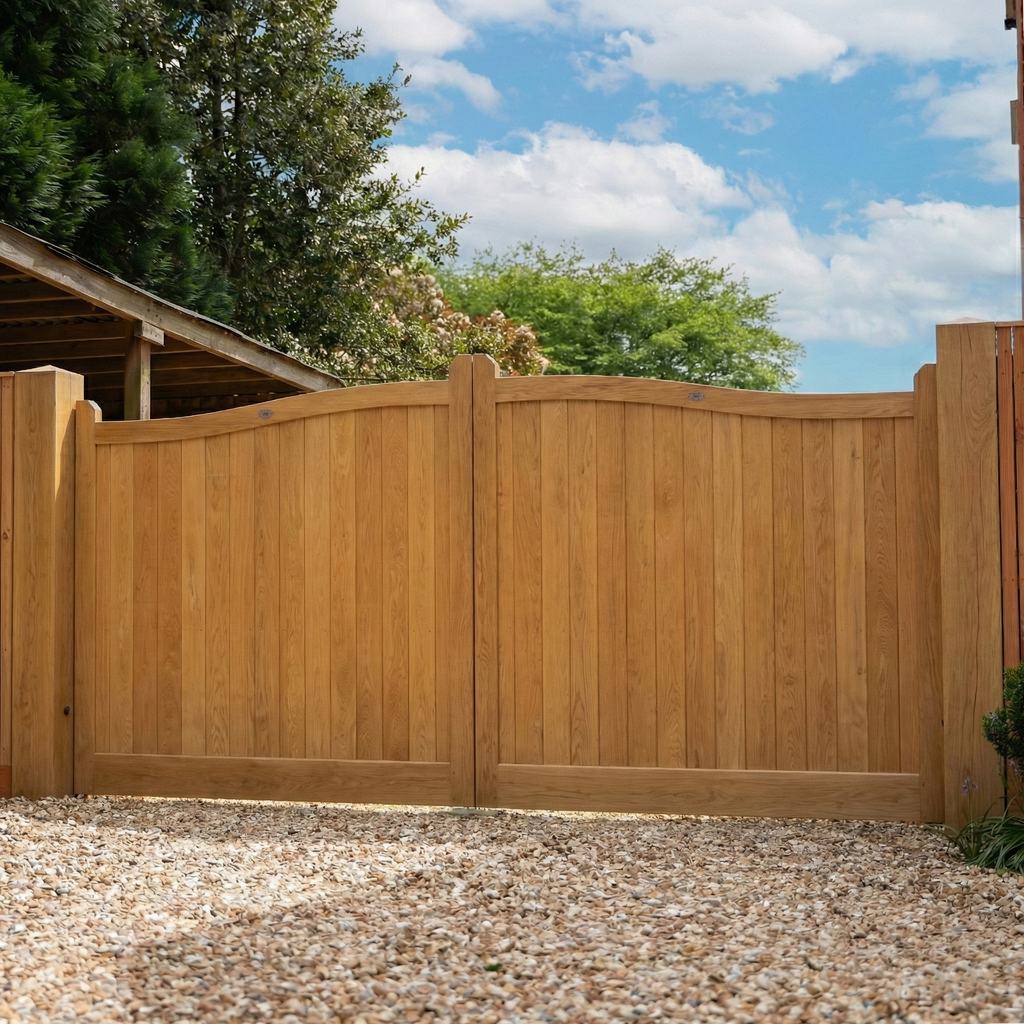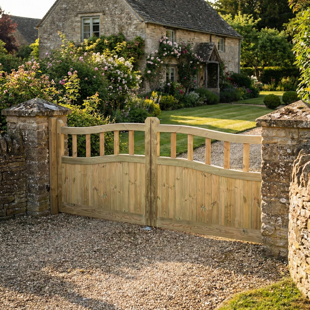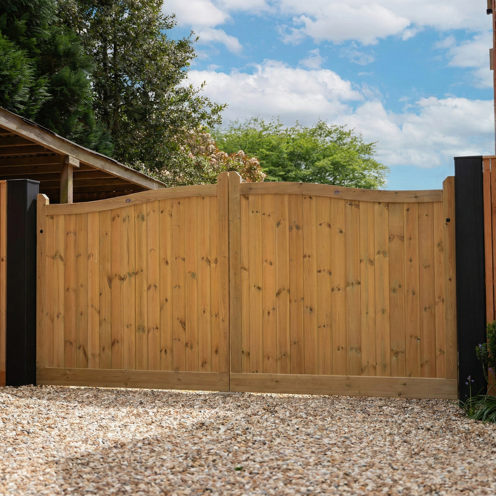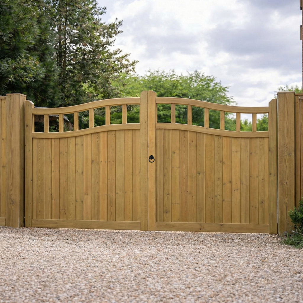 Enhance your property with the timeless charm and reliable security of our Swan Neck T&G Entrance Gate Pair. Designed with a graceful curved top and crafted using traditional Mortise and Tenon joinery, these gates offer the perfect balance of style and strength.