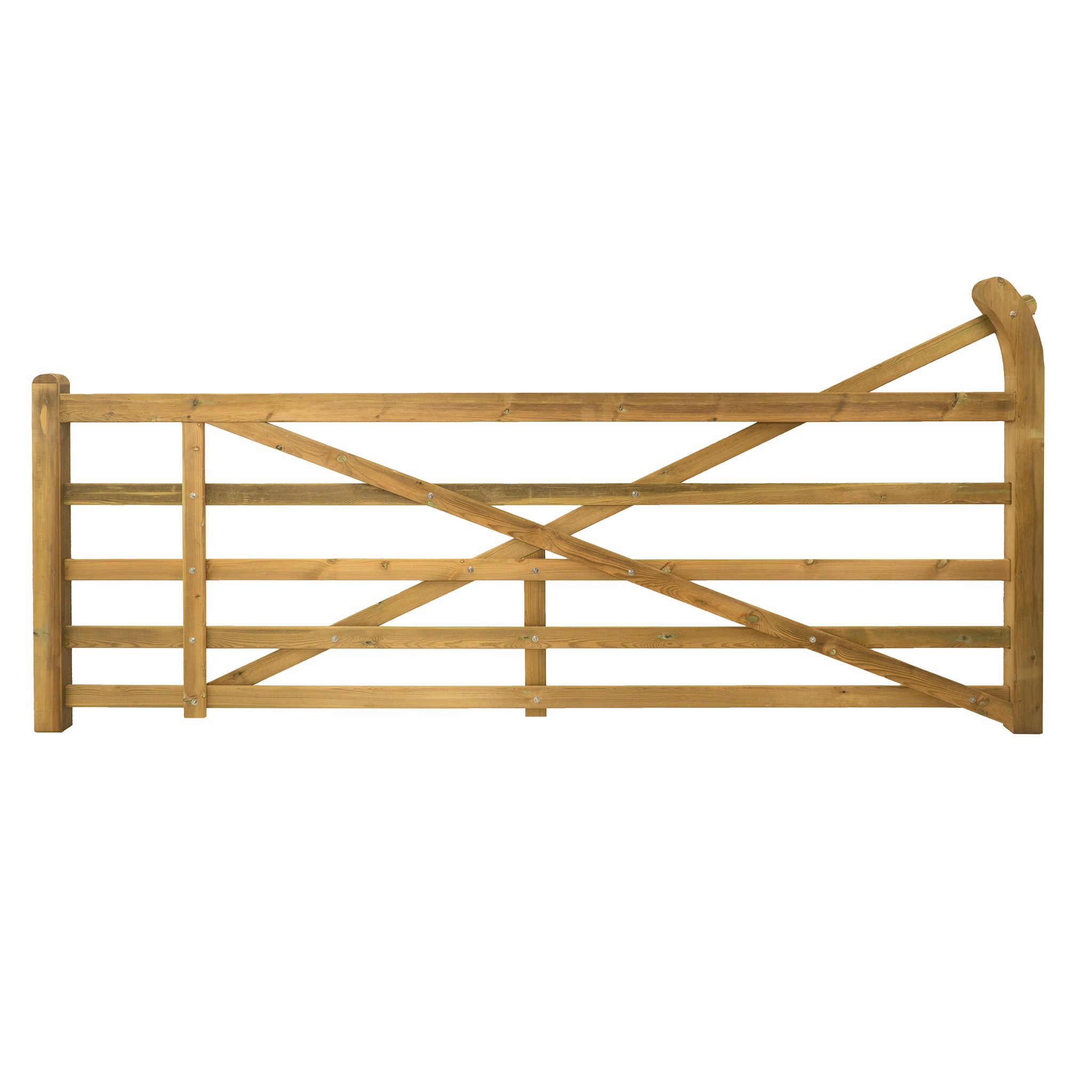 The Curved Heel Gate provides a touch of elegance to the standard field gate with its curved heel feature. It blends practicality with a more decorative look, making it perfect for residential entrances or stylish paddock fencing.