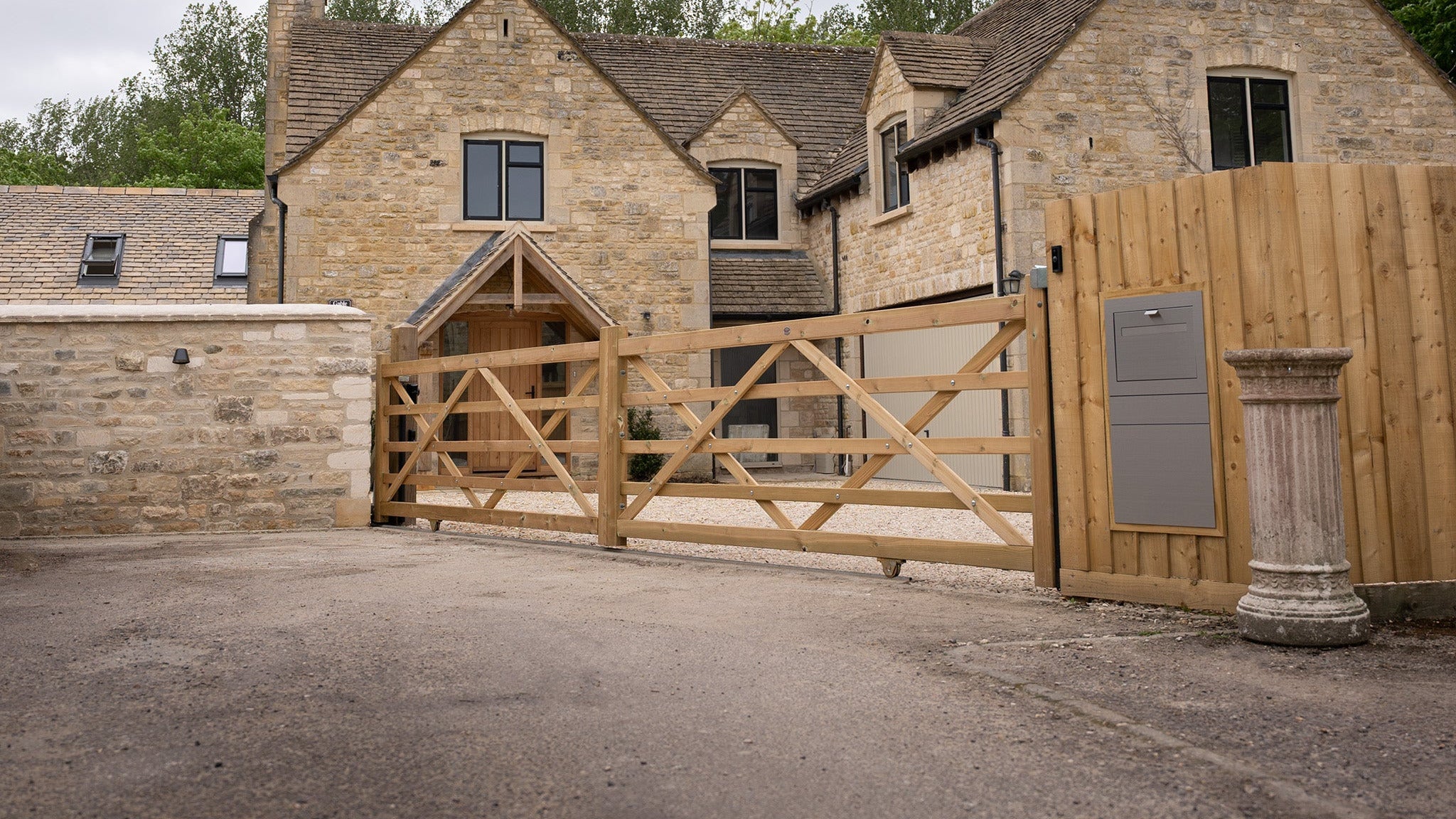 The spacing between the slats can be adjusted for privacy, allowing for a customisable balance between visibility and security. Their design not only enhances the property's exterior, but also allows for natural light and air flow, making them a popular choice for gardens, driveways, and entrances.